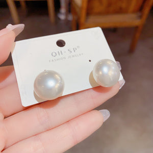 Home Sterling Silver Needle Elegant Fashion Flat Pearl Stud Earrings