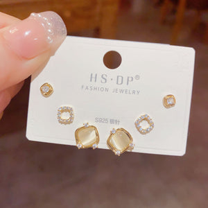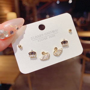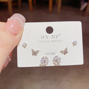 Sterling Silver Needle Micro Inlaid Zircon Short Earrings Short Hair