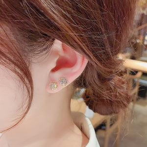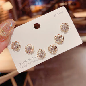 Sterling Silver Needle Zircon Rose Three-piece Set Ear Studs One Card Three Pairs