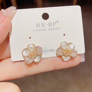 Sweet Micro-inlaid Flower Stud Earrings For Women Sterling Silver Needle Special-interest Design