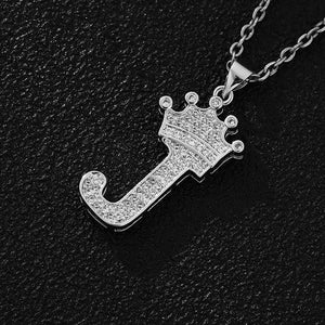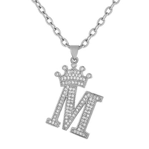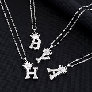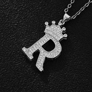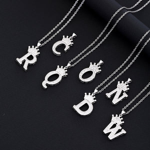 Unisex Copper Inlaid Zircon Crown English Letter Pendant Necklace