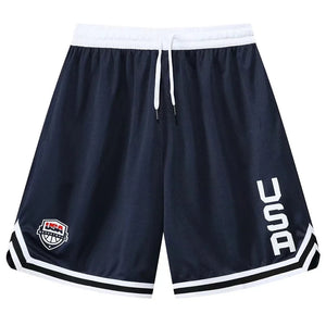 USA Print Basketball Shorts Training Men Active Shorts Loose Pockets Cycling Exercise Training Running Gum Sports Bottom Clothes
