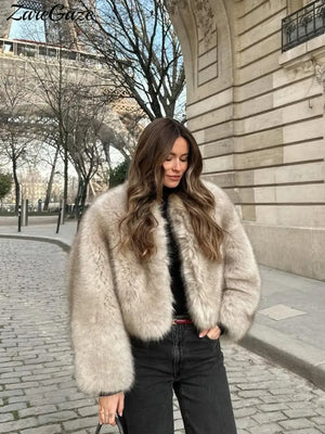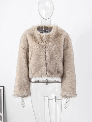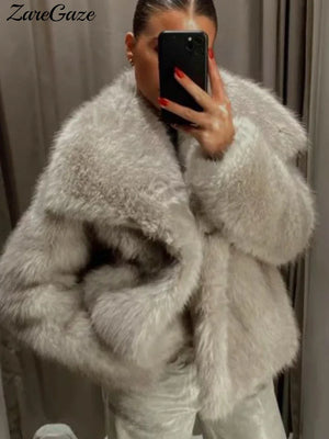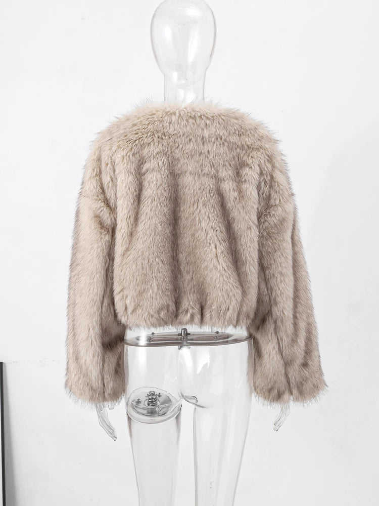 Warm Fluffy Faux Fur Jacket Coat Women Loose Long Sleeve V-neck Female Cardigan 2024 Winter Fashion Lady Overcoat Streetwear