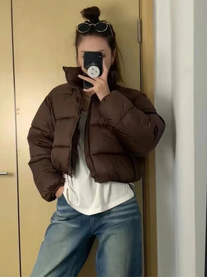 Winter Cotton Coat Women Short Parkas Warm Zipper Loose Down Warm Jacket Female Top Solid Thick Windproof Streetwear 2024 New