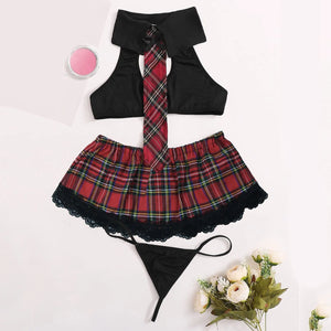 Womens Costume Sexy Lingerie Set Cosplay Top And Plaid Skirt Outfit