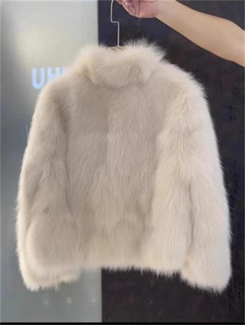 Women's Short Loose And Warm Imitation Fox Fur Fur Coat 2023 Autumn/winter Female New Korean Version Versatile Lace Up Thick Top