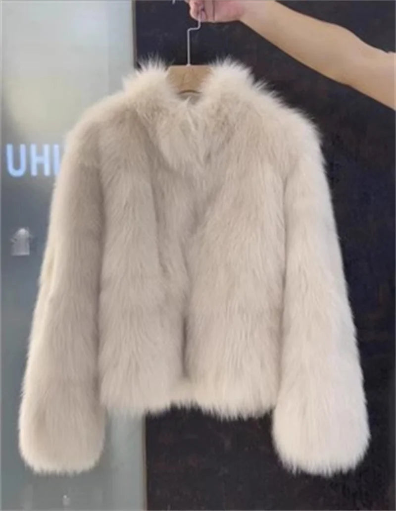 Home Women's Short Loose And Warm Imitation Fox Fur Fur Coat 2023 Autumn/winter Female New Korean Version Versatile Lace Up Thick Top