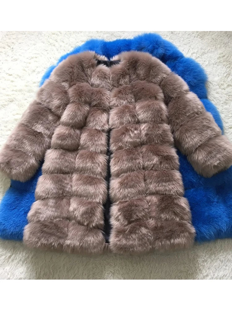 ZADORIN Europe Fashion 90cm Long Trench Coats Faux Fox Fur Coat Women Luxury Fur Splicing Warm Fluffy Fur Jacket Winter Overcoat