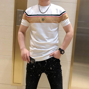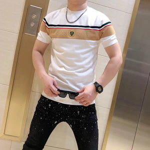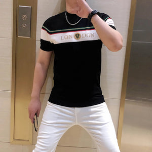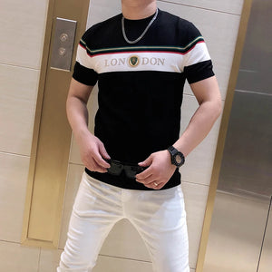 British Style Summer Men's Casual T-shirt Fashion Short Sleeve Slim Knitted T-shirt Male Round Neck Business Social Men Clothing