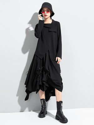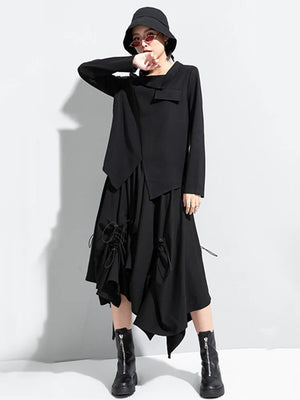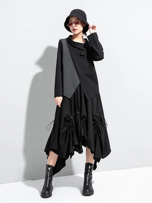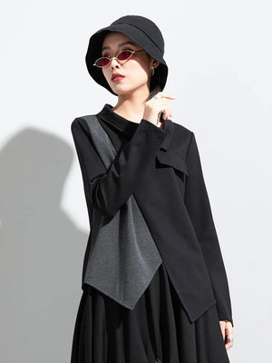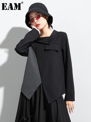 [EAM] Irregular Spliced Gray Big Size Loose Fit Sweatshirt New Lapel Long Sleeve Women Big Size Spring Autumn 2024 1DD0161