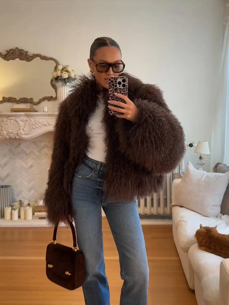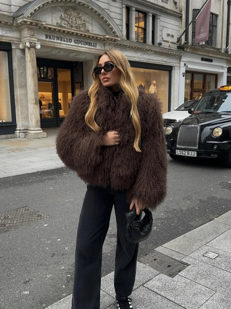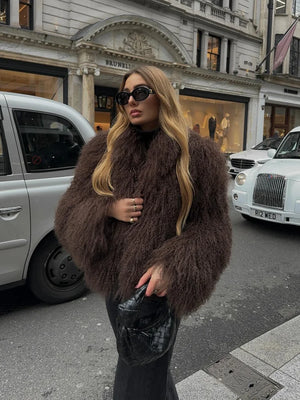 Fashion Solid Fluffy Faux Fur Jacket For Women Luxury O-neck Long Sleeve Warm Cardigan Coat 2024 Winter Lady Chic Street Outwear