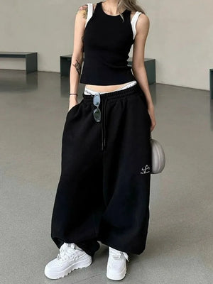 HOUZHOU Vintage Y2k Oversize Black Sweatpants Woman Jogger Korean Fashion Baggy Sports Pants Kpop Harajuku Streetwear TrousersUSD 32.0 ~ USD32.0/piece