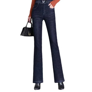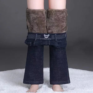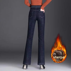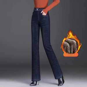Home Jeans Women's Fleece-lined Thickened High-waisted Straight-leg Elastic Waist Bell-bottom Pants Warm Autumn/winter