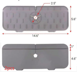 Try This Silicone Faucet Handle Drip Catcher Mat. This sturdy, flexible mat stays in place, drains well, and keeps the countertops dry