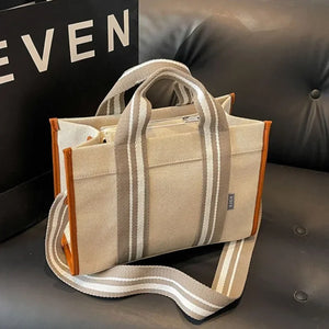 Large-capacity Canvas Bag Female 2024 New Contrast Retro Portable Tote Bag Commuting One-shoulder Messenger Bag in Class