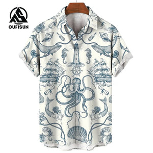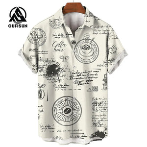 Men's Short Sleeve Shirt Summer Fashion Nautical Compass Anchor Printed Tops Men's Casual Loose Shirts