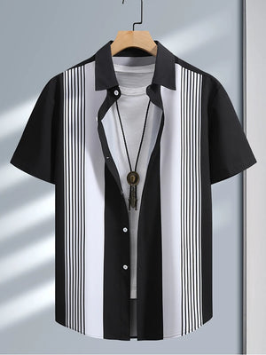 Men's Summer Casual Striped Printed Button Up Shirts Short Sleeved Button Down Shirts for Men Fashion Men's Summer Shirts