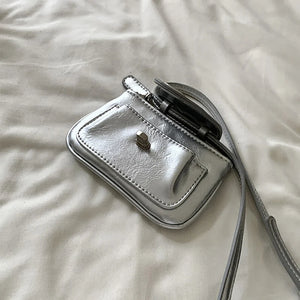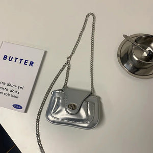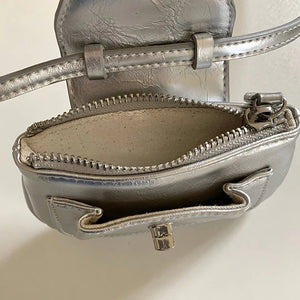 --The mini shoulder bag boasts an elegant silver leather finish, perfect for adding a touch of chic to any woman's outfit.