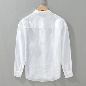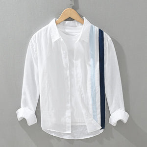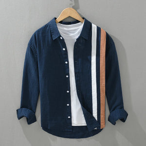 New 100% Linen Long Sleeve Shirt for Men Loose Shirts No Bounce Fashion Striped Patchwork Men's Clothing