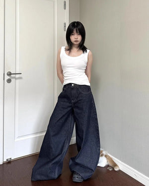 New American women black high street vibe wide-leg jeans for autumn and winter for men and women washed loose straight pants