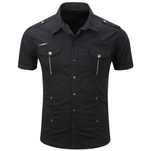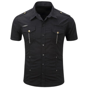 New Fashion Men's Safari Shirt Short Sleeve Summer Casual Tactical 100% Cotton Cargo Outdoor Pocket Work Shirts for Men