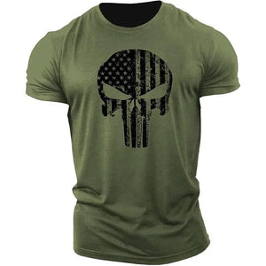 New Fashion Skull 3D Printing Men's Casual Sports T-Shirt Short Sleeve Summer New Quick Dry Tough Guy Army Green Plus Size Top