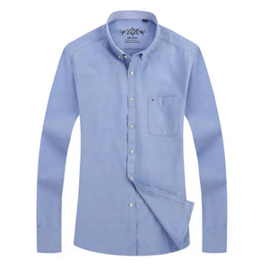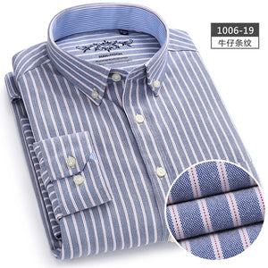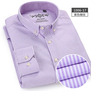 New Oxford woven men's shirt long sleeve striped fashion print casual business social breathable no-iron buckle collar