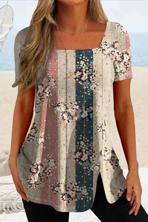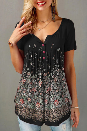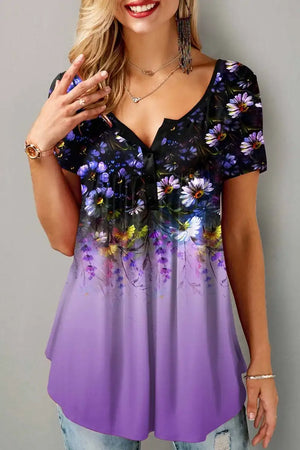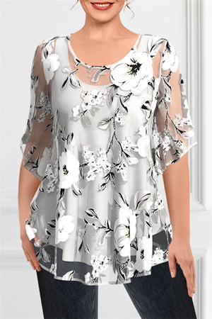 Plus Size Women's Casual Shirts Floral Printed Chiffon Ruffle Short Sleeves Layered Asymmetric Hem Round-neck Daily Commuter Top