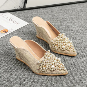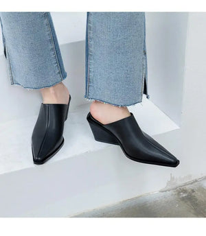 Shoes Woman's Slippers Loafers Luxury Slides Female Mule Cover Toe Square heel On A Wedge Heeled Mules Low 2025 Designer Block