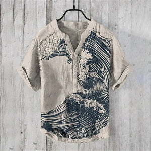Spring and summer men's and women's T-shirts independent station casual Hawaiian style T-shirts men's tops 100% linen new hot sale