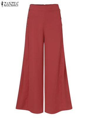 Summer Casual Suit Pants ZANZEA Elegant OL Women Wide Leg Pant Capris Solid Trouser Oversized High Waist Pantalon Palazzo