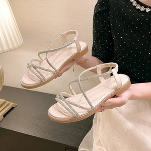 Summer New Sandals, Rhinestone Flat Sandals, Women's Open Toe Elastic Set Foot Cross Sandals, Women Sandals