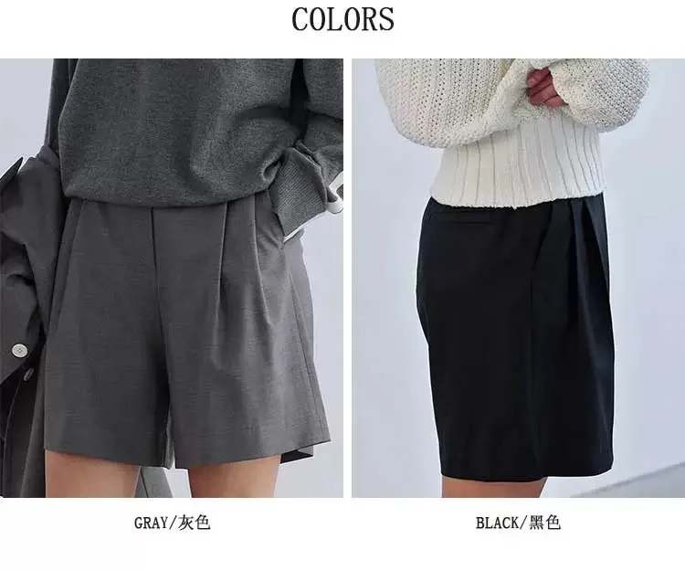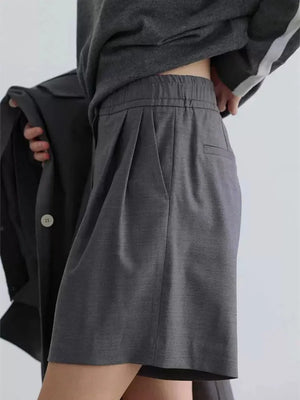 Summer New Women's Elastic Waist Gray or Black Shorts Simple Versatile Female Loose Simple Suit Short Pants