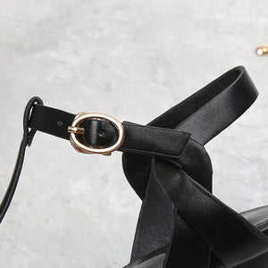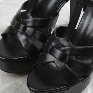 Summer Sexy Soft Leather Platform Sandals Women High Heels T-Buckle Party Pumps Black Stiletto Open Toe Ladies Dress Shoes