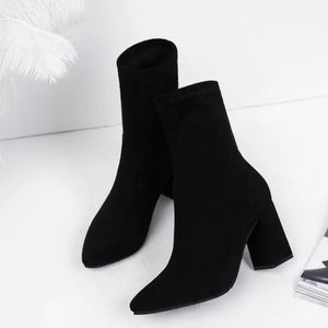 Thick Heel Women Short Boots Fashion Slimming Ankle Booties classic Style Autumn Winter Female Pointed Toe Women Boots