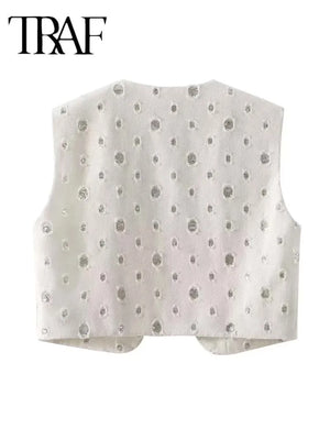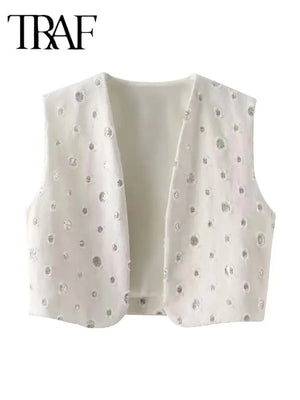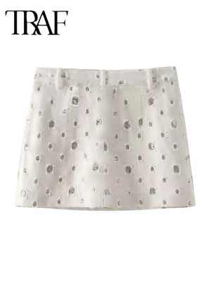 TRAF Elegant Sequin Skirt Sets For Women 2 Pieces Shinny Sleeveless Vest Women Suits Summer Fashion Zipped Skirts Set