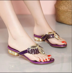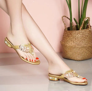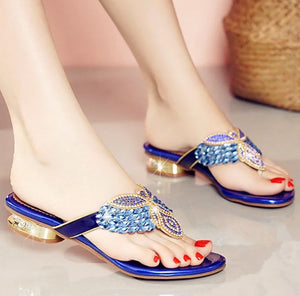 Water Diamond Slippers For Women Summer Outwear, Low Heel Bohemian Beach Shoes, Holiday Flip Flops, Sandals Wholesale
