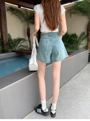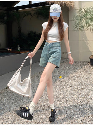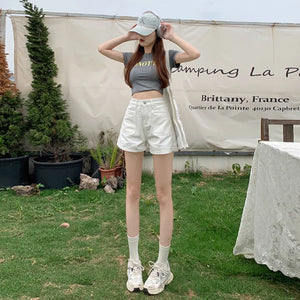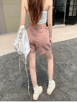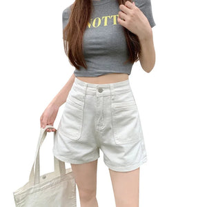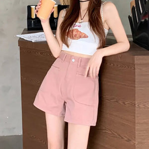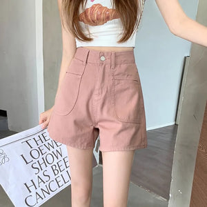 White Pink Denim Shorts Jeans for Women's Summer New High Waisted Design Pocket A-Line Slimming Loose Wide Leg Hot Short Pants