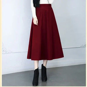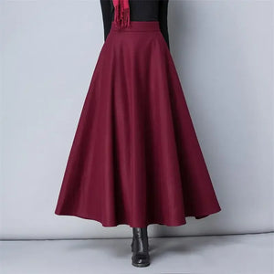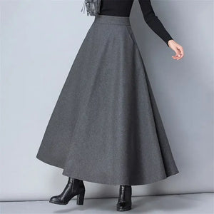 Winter Women Long Woolen Skirt Fashion High Waist Basic Wool Skirts Female Casual Thick Warm Elastic A-Line Maxi Skirts