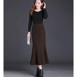 Home Winter Women Long Woolen Skirt Fashion High Waist Basic Wool Skirts Female Casual Thick Warm Elastic A-Line Maxi Skirts