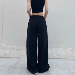 Women Casual Wide Leg Cargo Pants Drawstring Solid Streetwear Elastic Waist Sweatpants Loose Y2K Joggers Hip Hop Baggy Trousers