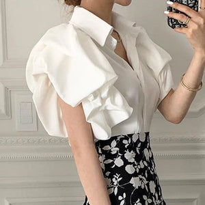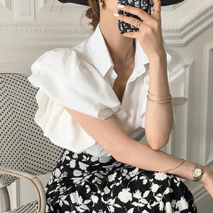 Women Chiffon Black Shirts Summer Fashion Elegant Puff Sleeve Tops Korean All Match Female Casual Blouse New