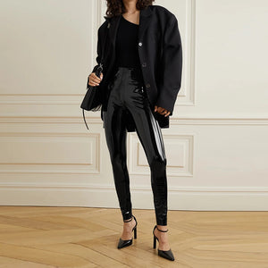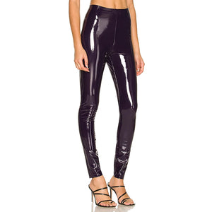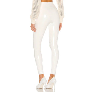 Women Shiny PU Leather White PVC Pants Slim Sexy Leggings Latex Stretchy High Waist Bodycon Pants Summer Skinny Trousers