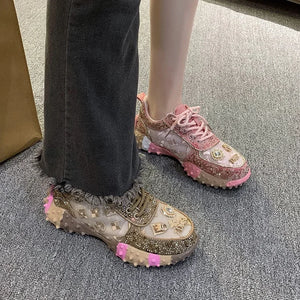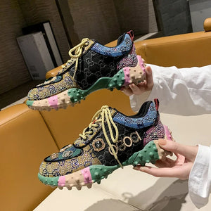 Women Shoes New Rhinestone Women Sneakser Diamond Breathable Luxury Designers Casual Thick Bottoms Shoes Zapatos Mujer Sneakers