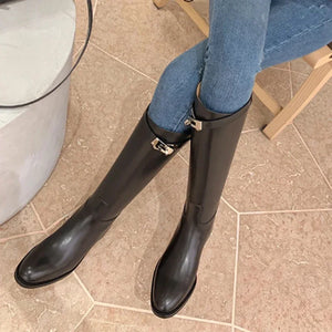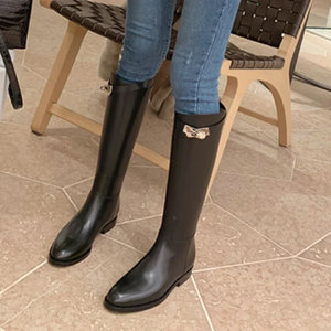 Women Shoes Winter Platform Women Long Boot Fashion Thick Sole Flats Heels Round Toe Knee High Boot Side Zipper Knight Boot