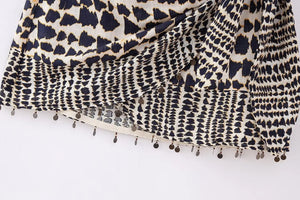 Women Vintage Geometric Print Knotted Mini Sarong Skirt Faldas Mujer Female Beading Tassel Casual Zipper Vestidos QUN4078