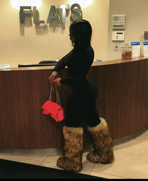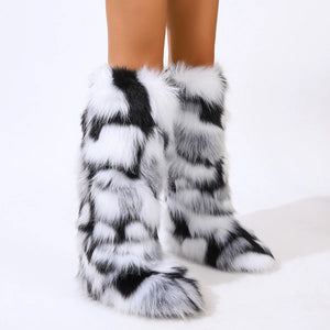 Women Winter Thigh High Fluffy Boots Ladies Furry Faux Fox Fur Long Warm Shoes girls New Designer Plush Knee High Fur Boots