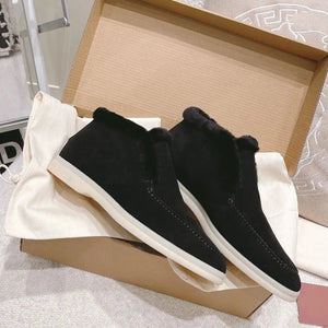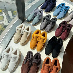 Home Women's Ankle Boots Cow Suede Loafers, Fur Integrated Warm Snow Boots For Women
