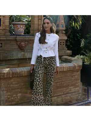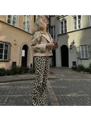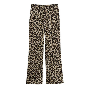 Women's Fashion and Casual Versatile Animal Print Straight Leg Pants Decorated Street Trousers Women's Slim Fit Zipper Trousers