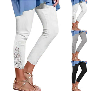 Women'S Long Pants Lace High Waisted Slim Stretchy Versatile Spring Autumn Cropped Pants Leggings Summer Breeches Pantalones
